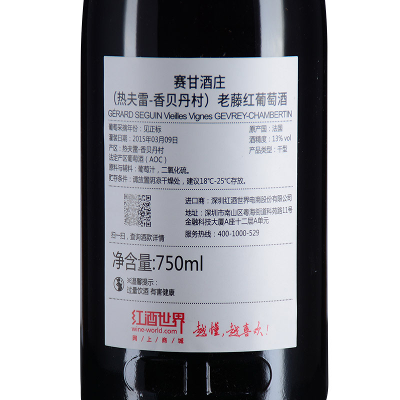 2013年赛甘酒庄(热夫雷-香贝丹村)老藤红葡萄酒 (法国勃艮第·村庄级)
