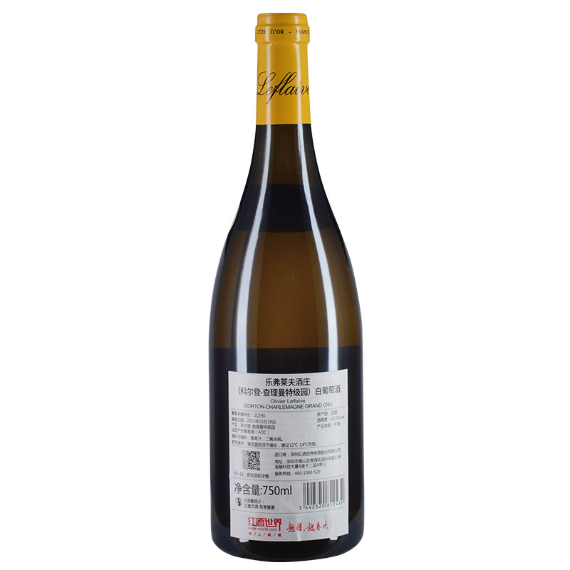 这是一款来自法国勃艮第产区的白葡萄酒,由产区内一座家族自营的精品酒庄——乐弗莱夫酒庄出品。这款葡萄酒选用科尔登-查理曼特级园(Corton-Charlemagne Grand Cru)的优质霞多丽酿制。成酒带有梨子、青苹果、柑橘、香料及矿物质的风味,口感复杂,层次分明,酸脆爽口,余味悠长,陈年潜力极佳。