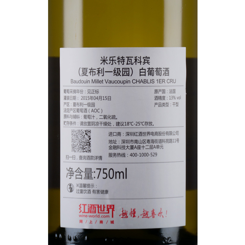 这是一款来自法国勃艮第产区的白葡萄酒。此款米乐特白葡萄酒产自夏布利一级园,这款酒呈清澈明亮的柠檬黄色,带有金色和银色的亮点,果香浓郁,散发着花朵和蜂蜜的香气;此酒风格优雅又不失力量感,口感纯净明快,精炼诱人。