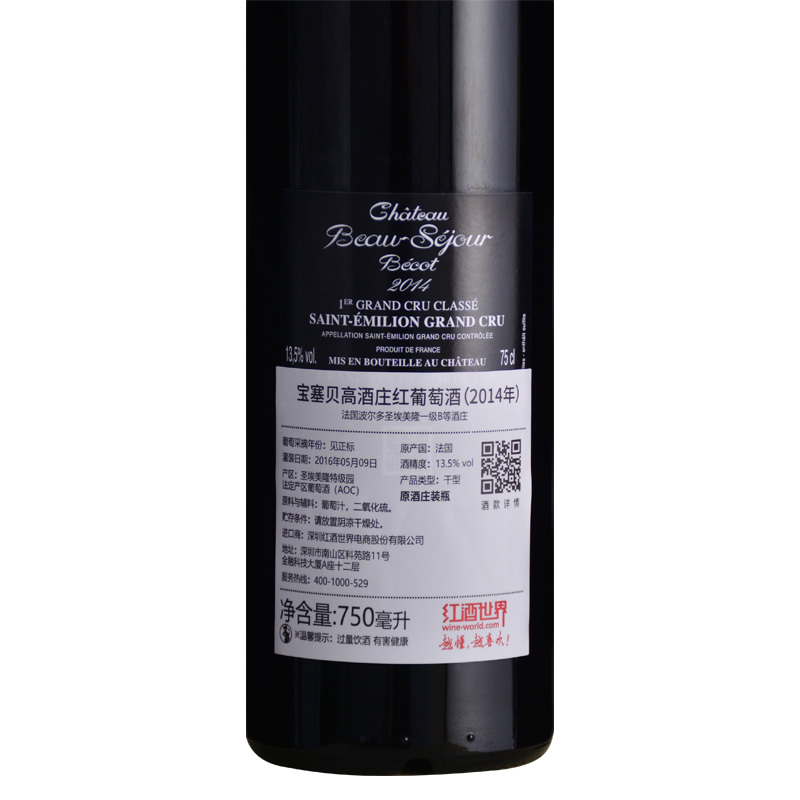 2014年宝塞贝高酒庄红葡萄酒 (法国圣埃美隆一级B等酒庄)