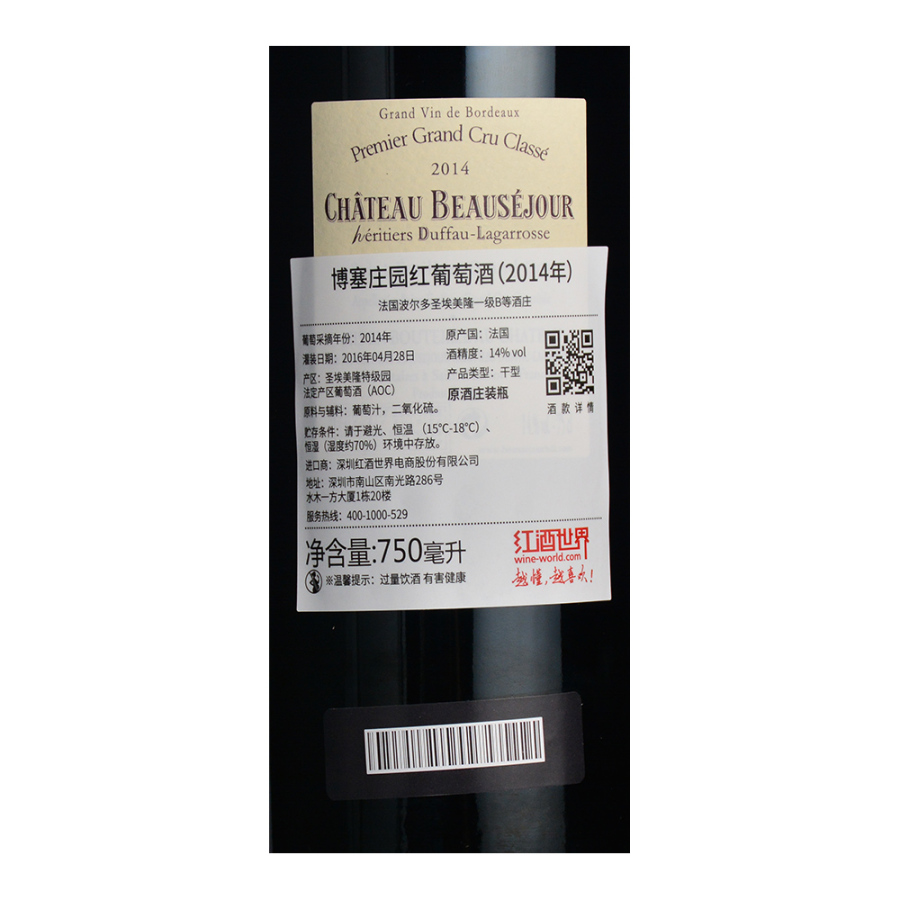 2014 Chateau Beausejour Heritiers Duffau Lagarrosse, Saint-Emilion Grand Cru, France