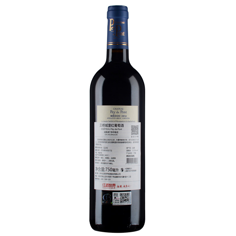 这是一款来自法国波尔多产区的红葡萄酒。这款酒是波尔多中级庄贝桥城堡的正牌酒,采用老藤葡萄酿制而成。2014年份的这款酒风格粗犷,散发着红色莓果和树叶的香气,伴随着铅笔芯的气息,入口时树叶风味明显,单宁紧实,目前正值适饮期。此酒可单独品饮,也可为多种美食佐餐。