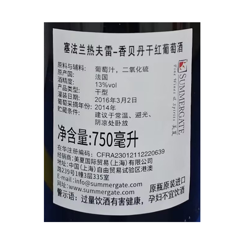 2014年塞法兰热夫雷-香贝丹干红葡萄酒