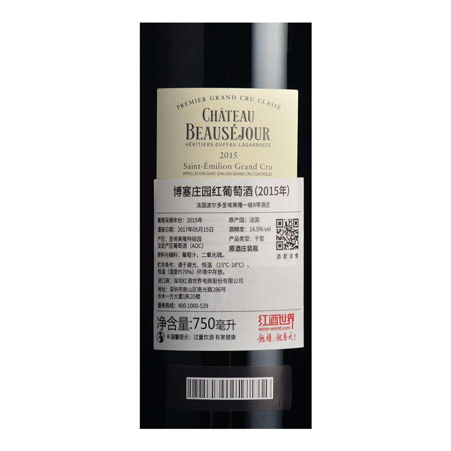 2015年博塞庄园红葡萄酒 (法国圣埃美隆一级B等酒庄)
