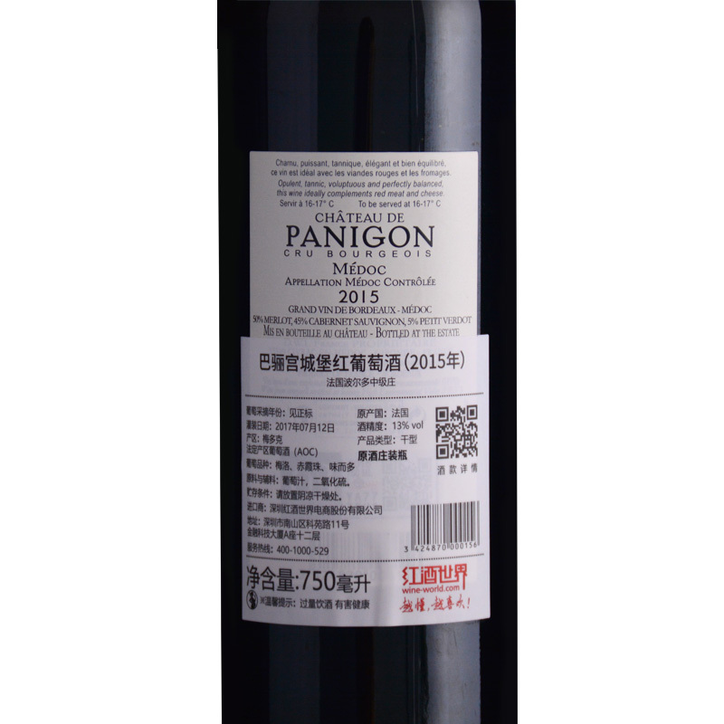 这是一款产自法国波尔多产区的红葡萄酒,产自梅多克产区的巴骊宫城堡。2015年份的这款酒散发着浓郁的黑色水果香气,口感圆润而丰富,酸度脆爽,单宁坚实,良好的结构感为其陈年潜力提供了良好的支撑,十分出众。