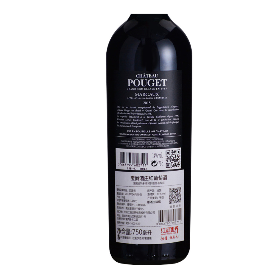 2015年宝爵酒庄红葡萄酒 2015年宝爵酒庄红葡萄酒 2015年宝爵酒庄红葡萄酒 宝爵酒庄 法国波尔多-玛歌 品质服务 品质服务