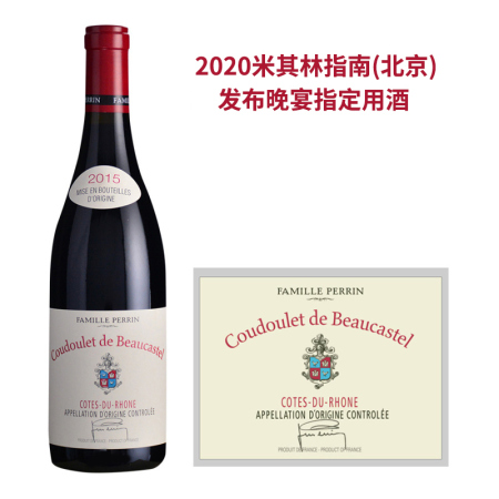 这是一款来自法国罗讷河谷(Rhone Valley)的红葡萄酒,产自罗讷河谷丘(Cotes du Rhone)产区。2015年份的这款酒由歌海娜(Grenache)、慕合怀特(Mourvedre)、西拉(Syrah)和神索(Cinsault)混酿而成,其中歌海娜和慕合怀特的比例分别为40%和30%。这款酒成熟度良好,散发着紫罗兰、黑莓、黑醋栗、药草、水果蛋糕和胡椒的香气,单宁柔顺,口感饱满,余味悠长。