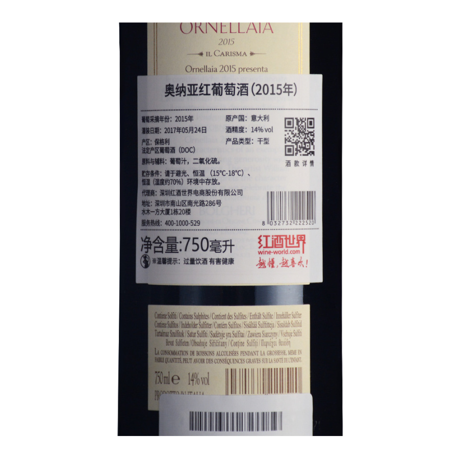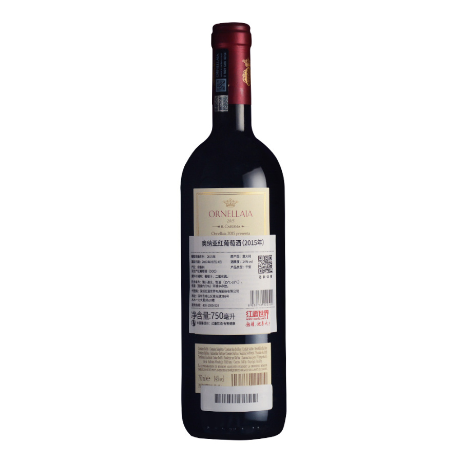 这是一款来自意大利托斯卡纳产区的红葡萄酒,产自托斯卡纳的顶级名庄——奥纳亚酒庄。得天独厚的风土条件、精雕细琢的酿酒工艺及追求卓越品质的酿酒理念成就了这款超级托斯卡纳。2015年份的这款酒散发着覆盆子果酱、黑樱桃和蓝莓的香气,并伴有一丝薄荷、烟草和亚洲香料的气息。其酒体饱满,口感集中,单宁丝滑而精致。