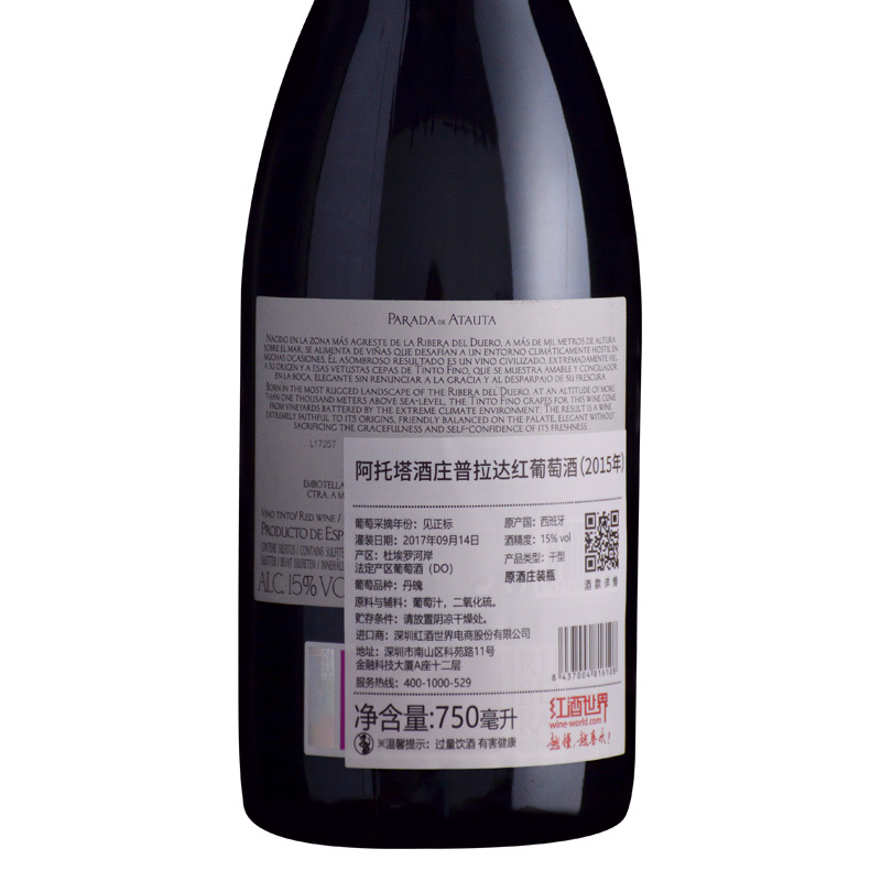 2015年阿托塔酒庄普拉达红葡萄酒