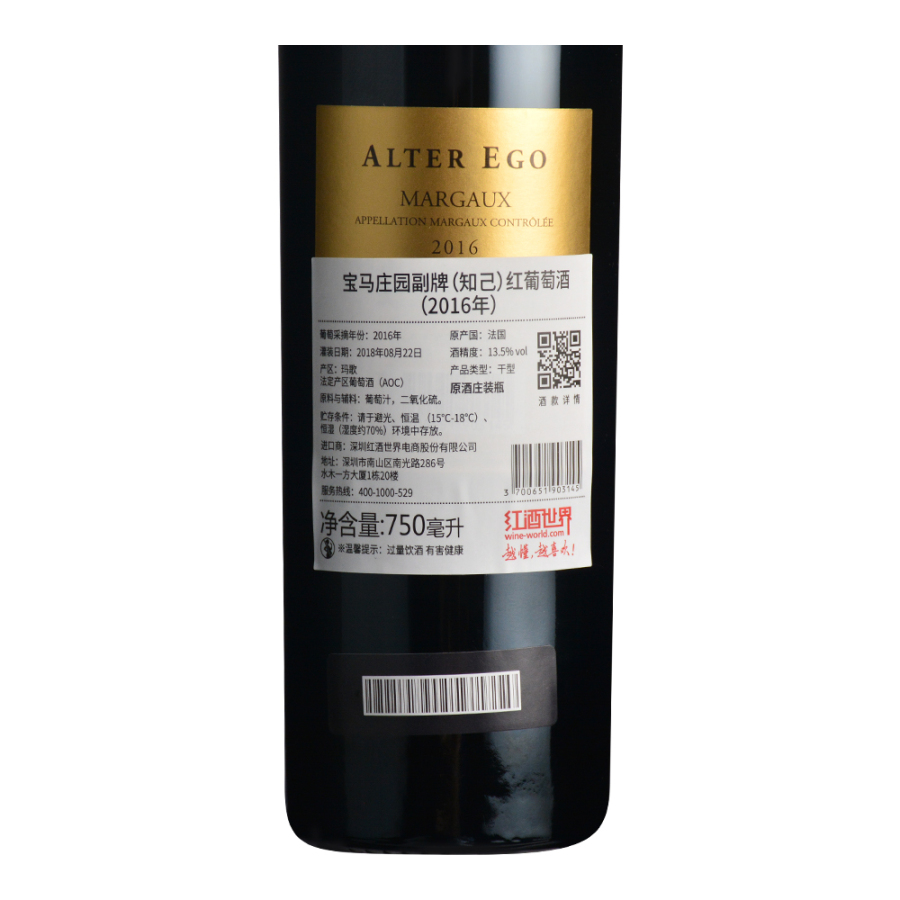这款酒是1855三级庄宝马庄园的副牌酒,诞生于1998年,在葡萄的选择和葡萄酒的调配上与宝马庄园正牌酒有所不同,在拉丁文中“Alter Ego”是“另一个自己”的意思,即副牌并不是附属品牌而是对同一片土地的不同诠释。2016年份的这款酒呈深石榴紫色,散发出诱人的黑樱桃、黑莓和红醋栗的香气,并伴随有薄荷、黑巧克力、丁香和灌木丛的气息。其酒体中等至饱满,口感浓郁,风味以黑色和红色水果为主,单宁如天鹅绒般顺滑,回味持久。