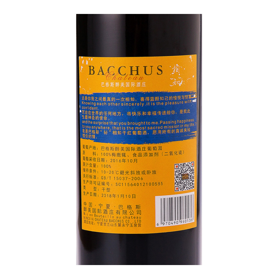 这是一款来自中国宁夏贺兰山东麓的葡萄酒,产自中国早期从事庄园葡萄酒酿造且风土卓越的精品酒庄——巴格斯。此酒酒液呈深宝石红色,散发着覆盆子和石榴等红色浆果的香气。其酒体饱满,结构平衡,单宁细致,口感圆润,回味中伴有点淡淡的香料及橡木气息。