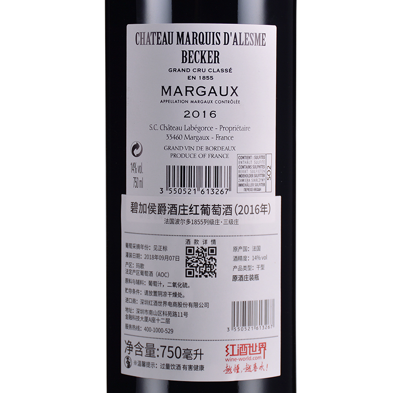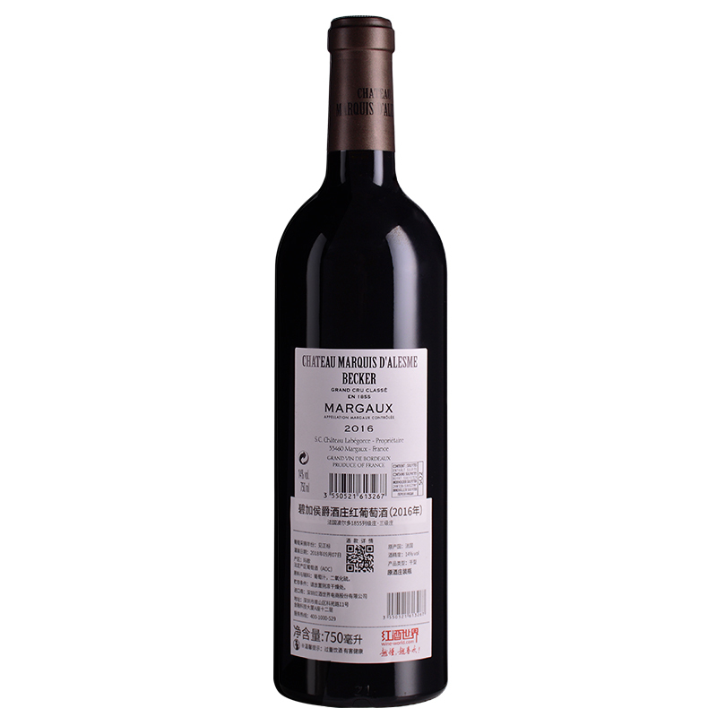 2016年碧加侯爵酒庄红葡萄酒 (法国1855三级庄)
