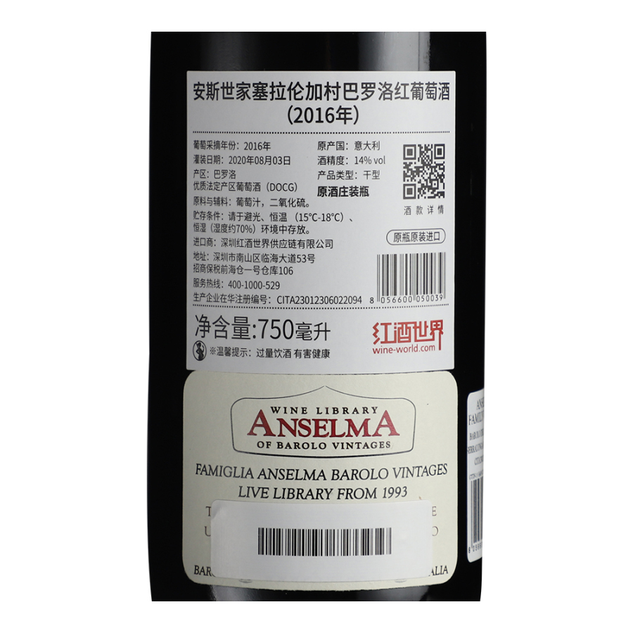 2016年安斯世家塞拉伦加村巴罗洛红葡萄酒