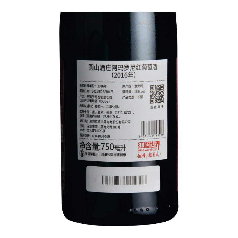 2016年圆山酒庄阿玛罗尼红葡萄酒 (阿玛罗尼DOCG)