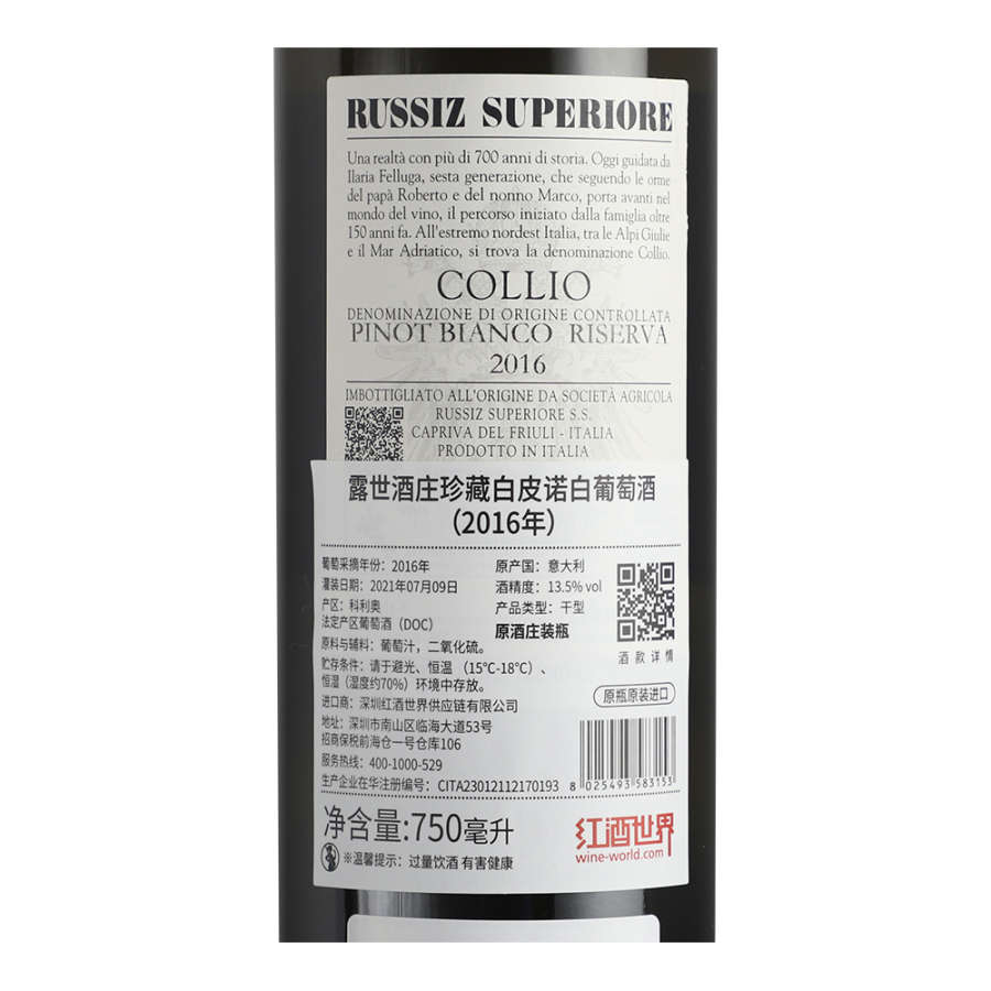 2016年露世酒庄珍藏白皮诺白葡萄酒 露世酒庄 意大利弗留利-威尼斯-朱利亚-科利奥 品质服务 品质服务