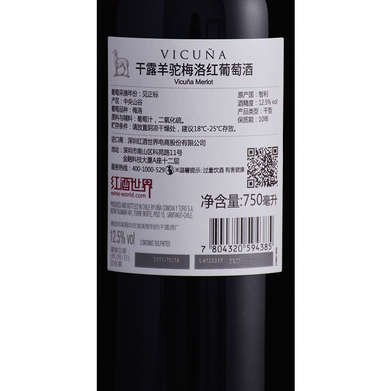 2016年干露羊驼梅洛红葡萄酒 (不同年份就近仓随机发货)