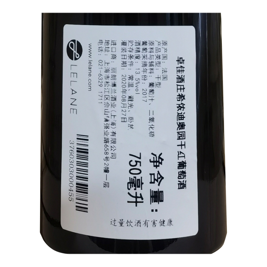 2017年卓佳酒庄希侬迪奥园干红葡萄酒