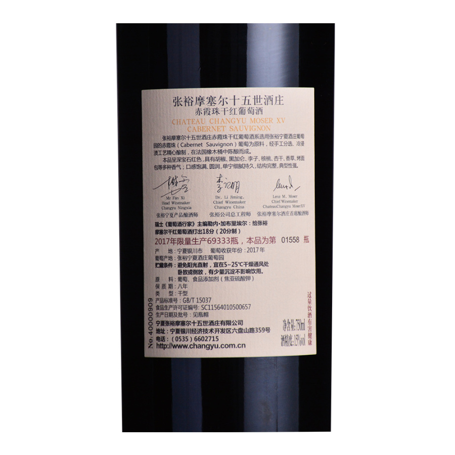 2017 Chateau Changyu Moser XV Cabernet Sauvignon, Ningxia, China