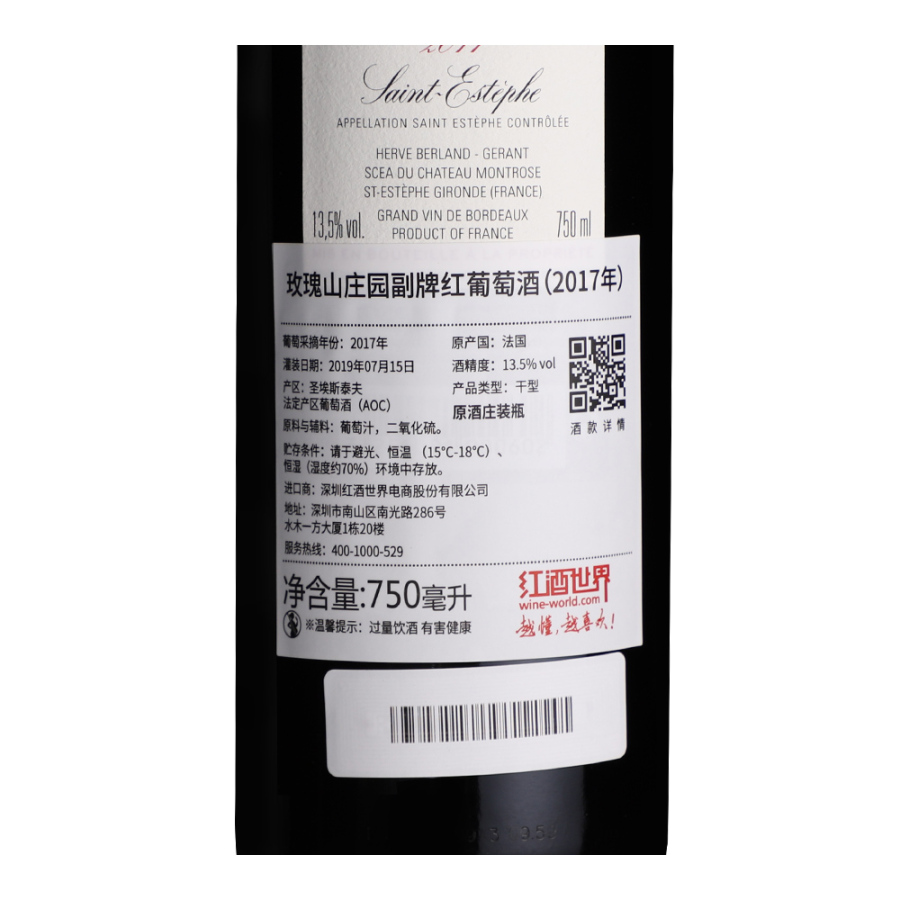 玫瑰山庄园创立于1815年,在成立短短40年后就成功获评1855二级庄,之后百余年里也一直以出产强劲有力、陈年潜力优秀的佳酿著称,其葡萄酒品质稳定而优异,因而酒庄也被推崇为“超二级庄”。玫瑰山庄园的副牌酒与正牌酒源自同样的葡萄园,遵循相同的严格标准,其品质得到了众多专业酒评家的肯定。2017年玫瑰山庄园副牌红葡萄酒主要由梅洛和赤霞珠混酿而成,配以少量的味而多和品丽珠。成酒颜色深邃,散发出馥郁的蓝莓、黑莓和黑樱桃的香气,并伴有雪松和烟草的气息,其酒体中等至饱满,口感浓郁,单宁细腻,余味悠长。
