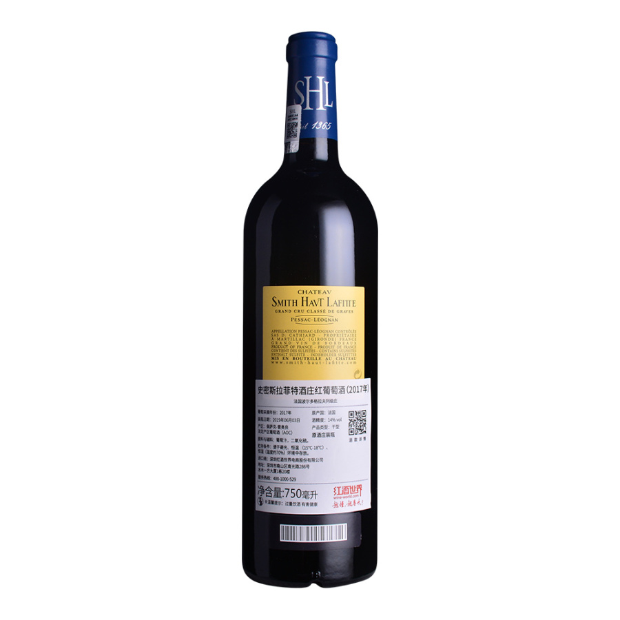 这是一款来自法国波尔多产区的红葡萄酒,是波尔多格拉夫列级名庄——史密斯拉菲特酒庄的正牌红葡萄酒。该酒庄葡萄园历史悠久,已经有超过650年历史,酒庄酿制的葡萄酒清新活泼,口感强劲,酒体饱满,带有独特的烟熏风味,一直备受酒评家和葡萄酒爱好者的喜爱。2017年份的这款酒展现出破碎黑樱桃、黑醋栗、野生蓝莓以及丝丝薰衣草和铅笔芯等气息,风格清新优雅,口感集中,单宁坚实而细腻,余味强劲悠长,夹杂着一丝矿物质风味。