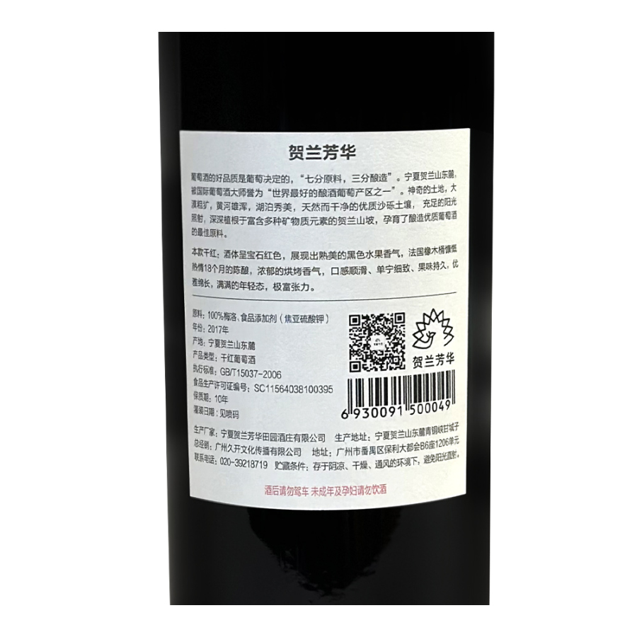2017年贺兰芳华酒庄172梅洛红葡萄酒