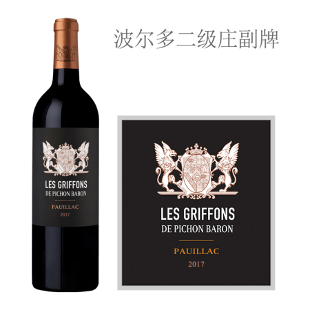 狮鹫红葡萄酒是波尔多“超二级庄”男爵古堡的副牌酒,名称源自其酒标上的两只狮鹫。2017年的此酒采用52%赤霞珠和48%梅洛混酿而成,经历了18个月的橡木桶陈酿。成酒颜色深邃,散发出樱桃和草莓等新鲜红色水果的香气,随后缓缓过渡到微妙的甜香料气息。其口感如天鹅绒般丝滑,单宁柔顺而多汁,结构平衡,余味和谐而持久,是一款风格优雅的葡萄酒。