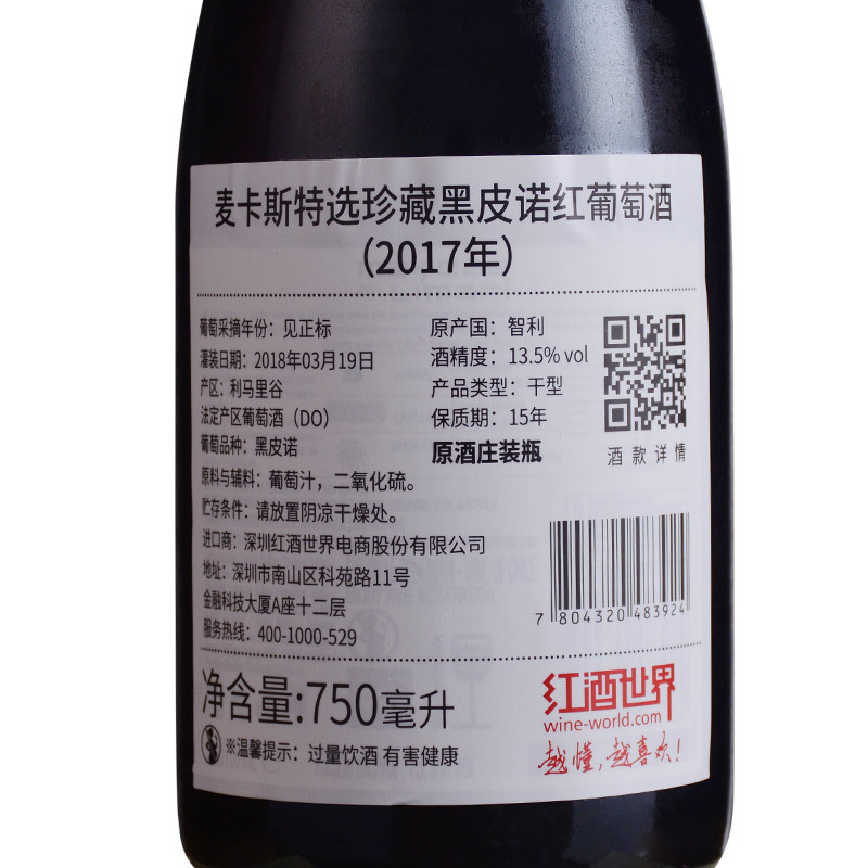 麦卡斯酒庄 智利-利马里谷 黑皮诺 品质服务 品质服务