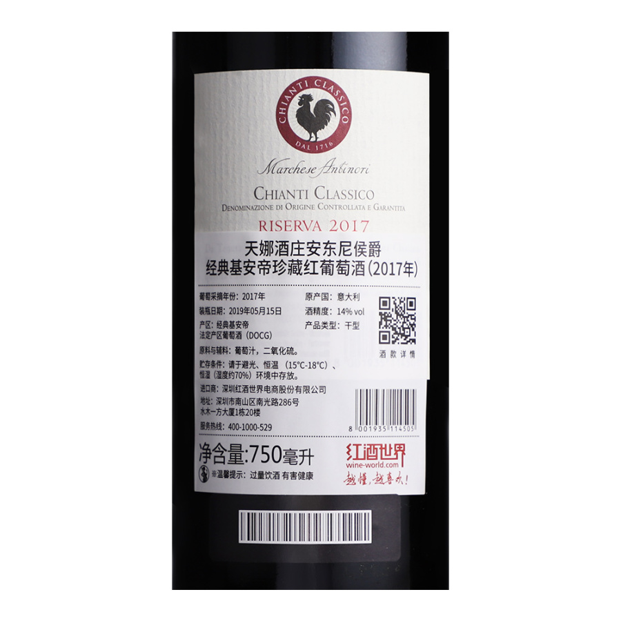 2017年天娜酒庄安东尼侯爵经典基安帝珍藏红葡萄酒