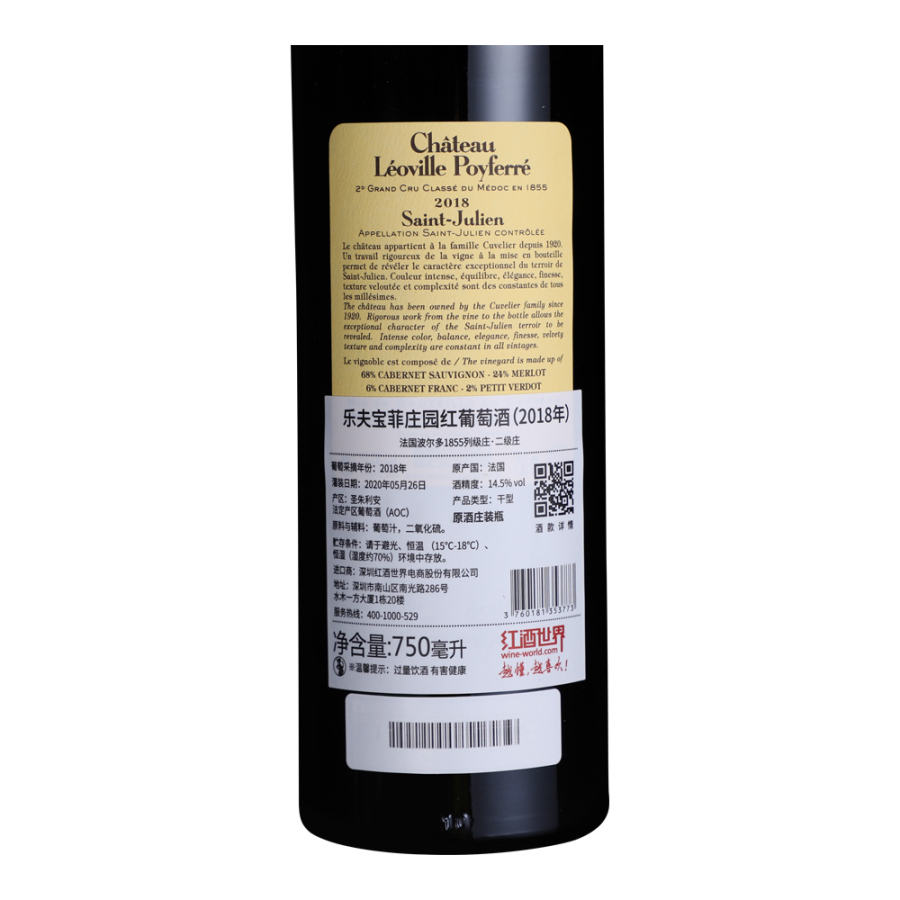 乐夫宝菲庄园位列波尔多二级庄,与“超二级庄”雄狮(Chateau Leoville Las Cases)及巴顿(Chateau Leoville Barton)共同起源于露维利酒庄(Domaine de Leoville),该酒庄历史上的名声和地位仅次于后来的波尔多一级庄。由著名的“飞行酿酒师”米歇尔·罗兰(Michel Rolland)指导酿酒,乐夫宝菲自2000年以来,一直稳定保持其优秀的品质。2018年乐夫宝菲庄园红葡萄酒呈浓郁的紫红色,虽果味浓郁、单宁充沛,但仍然保持着轻盈和飘逸的质感,有着令人难以置信的纯度。此酒充盈着黑醋栗、春天的花朵、烟草、紫罗兰、木炭、雪松和铅笔的气息,风味凝练,结构平衡,余韵悠长。