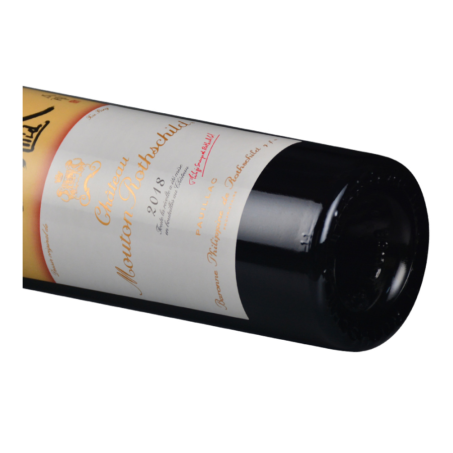 这是一款来自法国波尔多波雅克(Pauillac)产区的红葡萄酒,由1855一级庄——木桐酒庄出品。2018年份酒款的酒标由中国艺术家徐冰先生设计,他以“造字”艺术著称,首创将英文字母当成汉字笔划来创造书法,把中文与英文两种截然不同的语言系统联结在一起,用“Mouton”和“Rothschild”两个单词的字母创造出两个“汉字”。2018年份的此酒颜色深邃,散发出黑李子、黑醋栗甜酒、蓝莓派和摩卡咖啡的香气,伴有乌龙茶、雪茄以及一丝碎石的气息。其酒体中等至饱满,单宁尤为成熟,质地紧实且具有颗粒感,口感浓郁、集中,拥有很高的复杂度。