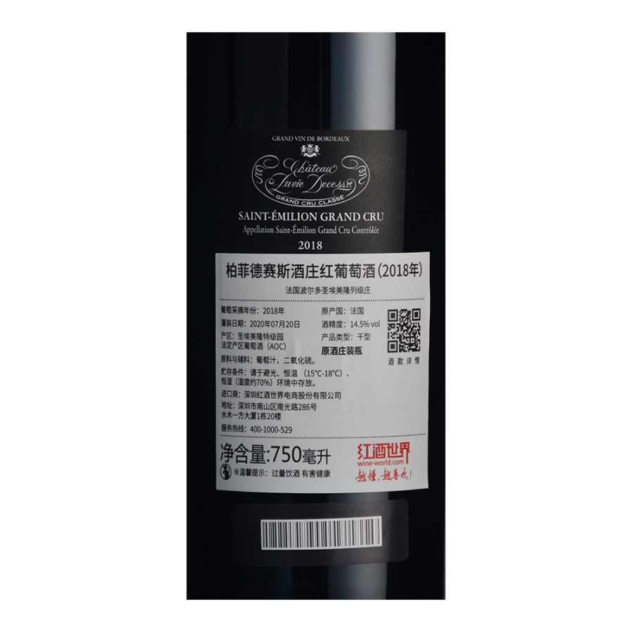 2018年柏菲德赛斯酒庄红葡萄酒 (法国圣埃美隆列级庄)