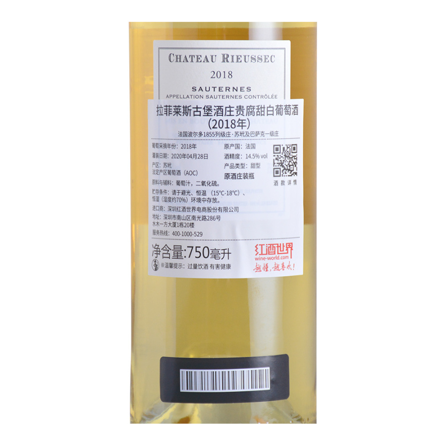 2018年拉菲莱斯古堡酒庄贵腐甜白葡萄酒 (苏玳及巴萨克一级庄)