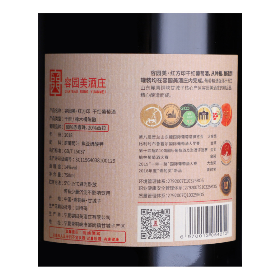2018 Chateau Rongyuanmei Red Squary Seal Cabernet Sauvignon Syrah, Helan Mountain's East Foothill, China