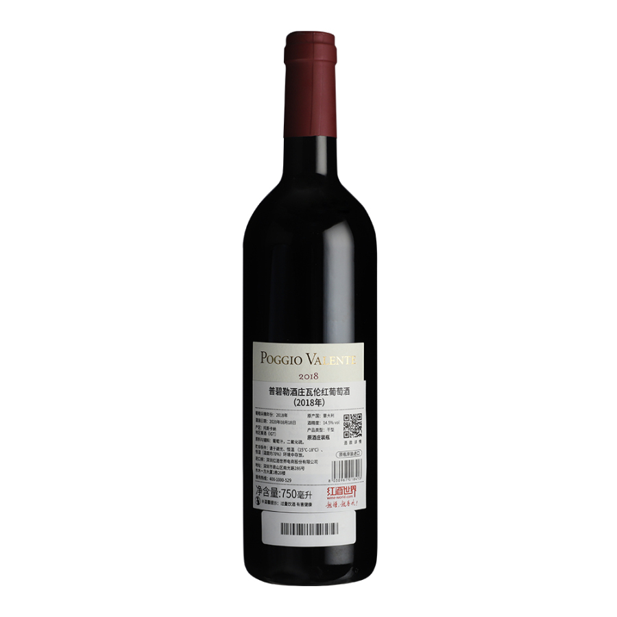 2018年普碧勒酒庄瓦伦红葡萄酒