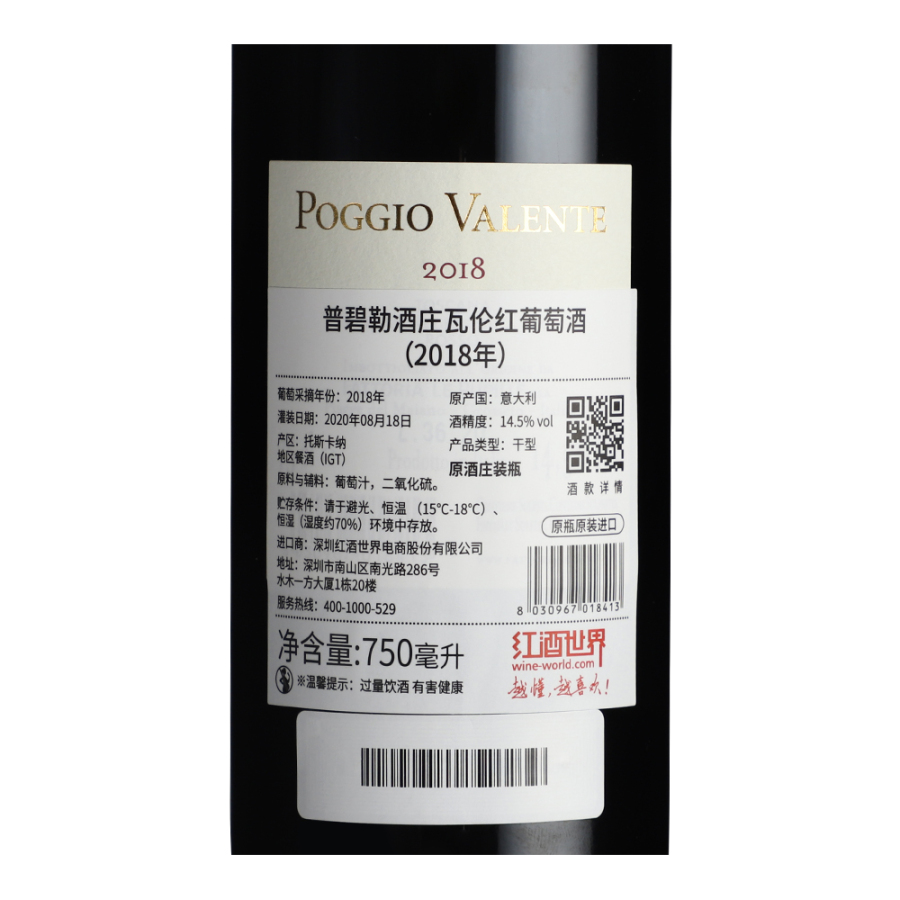 普碧勒酒庄坐落在意大利的托斯卡纳产区,成立于20世纪80年代。仅仅成立短短几十年,其推出的葡萄酒便拥有不俗的品质,近些年来,旗下多款葡萄酒曾获得帕克团队(Robert Parker Team)以及詹姆斯· 萨克林(James Suckling)等著名酒评家90分以上的高分好评。2018年份的普碧勒酒庄瓦伦红葡萄酒散发出樱桃、蓝莓、醋栗和李子的水果香气,具有香草、坚果和香料的气息。其酒体中等至饱满,颇具深度,风格优雅,拥有精致的单宁,果香浓郁,纯净的余味十分悠长。