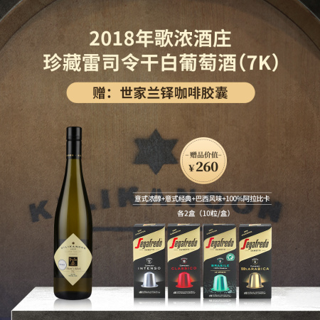 【买歌浓赠咖啡胶囊】2018年歌浓酒庄珍藏雷司令干白葡萄酒(7K)*1  赠:世家兰铎咖啡胶囊(意式浓醇+意式经典+巴西风味+100%阿拉比卡 各2盒) 【买歌浓赠咖啡胶囊】2018年歌浓酒庄珍藏雷司令干白葡萄酒(7K)*1  赠:世家兰铎咖啡胶囊(意式浓醇+意式经典+巴西风味+100%阿拉比卡 共8盒 80粒) 【买歌浓赠咖啡胶囊】2018年歌浓酒庄珍藏雷司令干白葡萄酒(7K)*1  赠:世家兰铎咖啡胶囊(意式浓醇+意式经典+巴西风味+100%阿拉比卡 各2盒) 【买歌浓赠咖啡胶囊】2018年歌浓酒庄珍藏雷司令干白葡萄酒(7K)*1  赠:世家兰铎咖啡胶囊(意式浓醇+意式经典+巴西风味+100%阿拉比卡 各2盒) 歌浓酒庄 克莱尔谷产区 雷司令 品质服务 品质服务