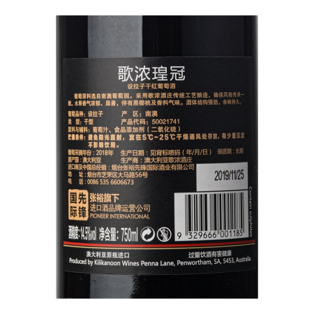 【6瓶套装】2018年歌浓瑝冠设拉子干红葡萄酒