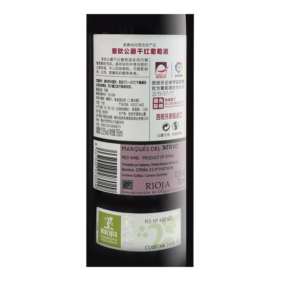 2018 Marques Del Atrio Dry Red Wine, Rioja, Spain
