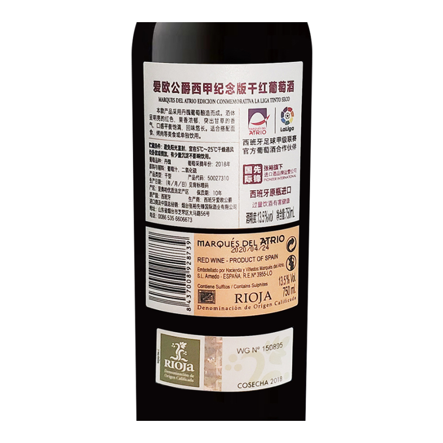 2018 Marques Del Atrio Edicion Conmemorativa La Liga Tinto Seco, Rioja, Spain