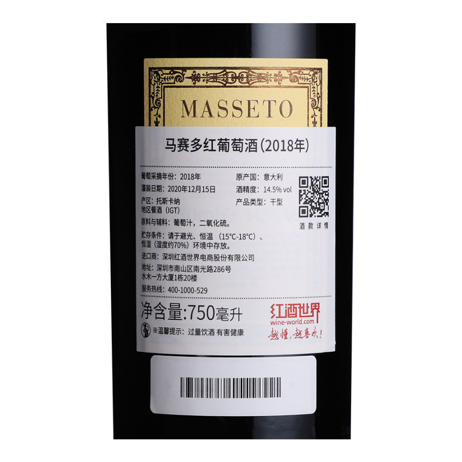 这是一款产自意大利托斯卡纳产区的红葡萄酒。马赛多红葡萄酒是意大利优质葡萄酒之一,是“超级托斯卡纳”葡萄酒的杰出代表。这款红葡萄酒来自意大利托斯卡纳产区,是意大利优质葡萄酒之一,更是“超级托斯卡纳”(Super Tuscan)葡萄酒的杰出代表。凭借其卓越的品质,该酒获得了许多酒评家的青睐,詹姆斯·萨克林(James Suckling)曾专门撰文夸赞过马赛多,称其“足以与帕图斯(Petrus)和里鹏(Le Pin)等传奇葡萄酒相媲美”。2018年马赛多红葡萄酒采用100%梅洛酿造而成,展现出成熟黑莓和黑樱桃的馥郁果香,缓缓过渡到香料、皮革、巧克力和甜烟草的芳香,风味凝练,骨架坚实,单宁精致细腻,口感多汁、丰富而协调。