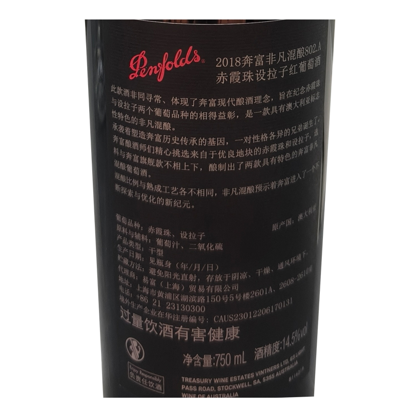 2018年奔富非凡混酿802.A赤霞珠设拉子红葡萄酒(礼盒装)