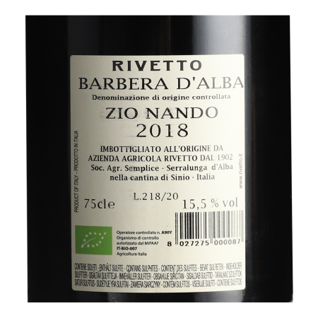 2018 Rivetto Zio Nando Barbera d'Alba DOC, Piedmont, Italy*6