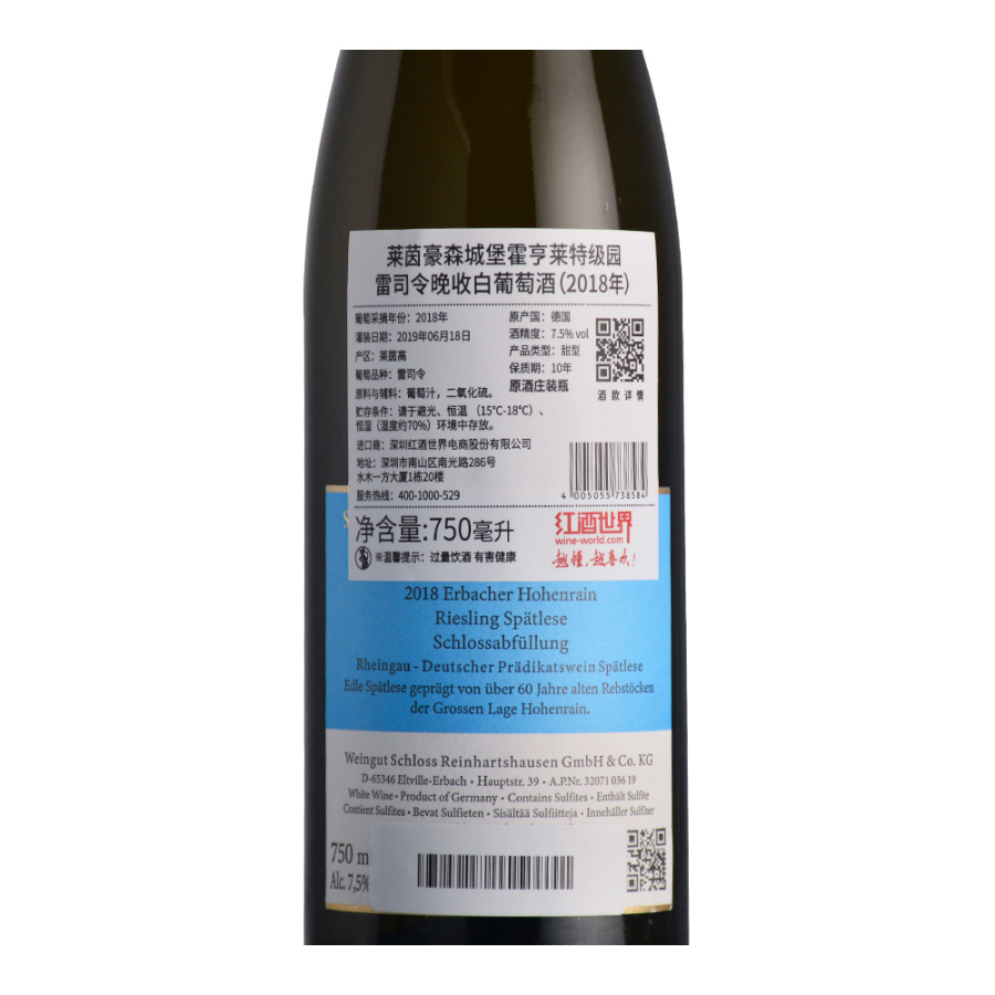 2018年莱茵豪森城堡霍亨莱特级园雷司令晚收白葡萄酒