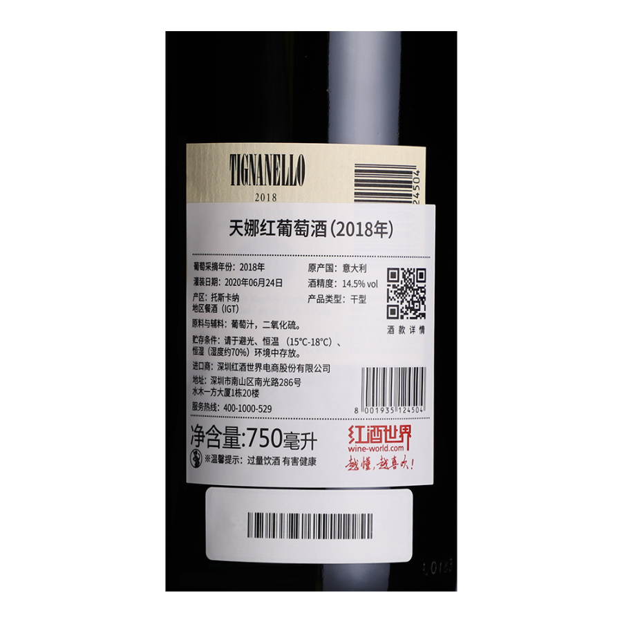 2018年天娜红葡萄酒