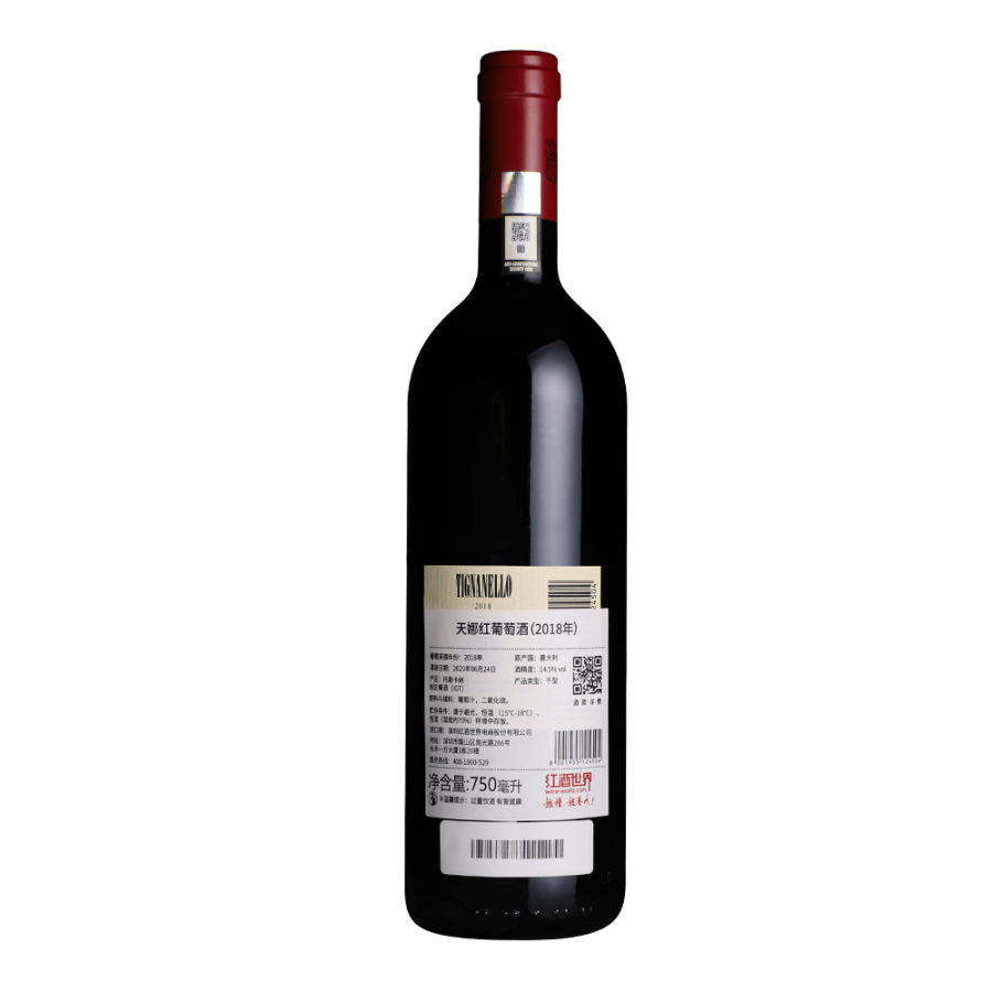 天娜红葡萄酒是意大利公认的第一款真正的“超级托斯卡纳”葡萄酒,其颠覆了经典基安帝产区的酿酒传统,并改革了酿造方式,使托斯卡纳产区的葡萄酒酿造进入了一个全新的阶段。酒款以其优异的品质广受各大酒评家喜爱,其中2016年天娜红葡萄酒还曾在2020年《葡萄酒爱好者》(Wine Enthusiast)“百大窖藏精选”榜单中拔得了头筹。2018年的此酒呈深宝石红色,成熟的红色水果、黑樱桃、酸樱桃的芬芳与香草、薄荷、白胡椒和桃金娘的微妙香气相交织。其口感丰富而平衡,如天鹅绒般柔顺的单宁被卓越的清新感所支撑,令此酒回味持久、优雅。
