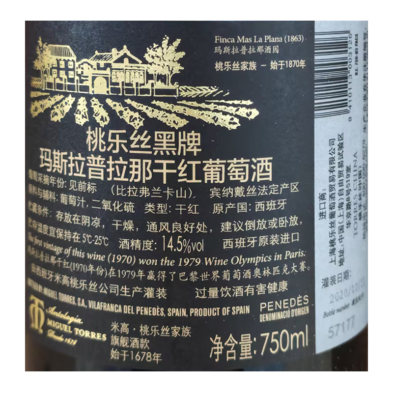 2018年桃乐丝黑牌玛斯拉普拉那干红葡萄酒