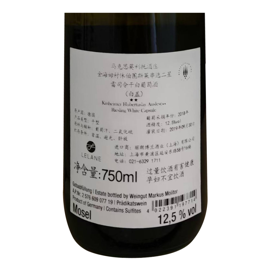 2018年马克思莫利托酒庄金海姆村休伯图斯莱串选二星雷司令干白葡萄酒(白盖) 玛斯莫丽酒庄 摩泽尔 雷司令 品质服务 品质服务