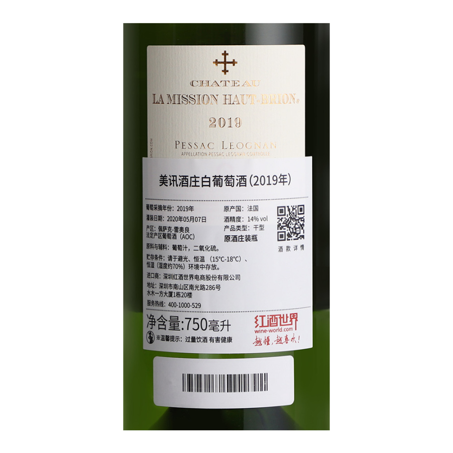 美讯酒庄是酒业巨头克兰斯帝龙酒业集团(Domaine Clarence Dillon)旗下的格拉夫列级庄,不仅与大名鼎鼎的侯伯王庄园师出同门,而且还共享优秀的酿酒团队。在优秀酿酒团队和优越风土条件的双重加持下,美讯酒庄佳酿频出,名声和品质皆更上一层楼。2019年美讯酒庄白葡萄酒选用69.9%的赛美蓉和30.1%的长相思混酿而成,呈浅柠檬黄色,带有淡淡的绿色调,香气中带有酸橙、白桃和西柚的气息,柑橘类水果和矿物质的风味相互交织,酒体适中至饱满,余味清新绵长。