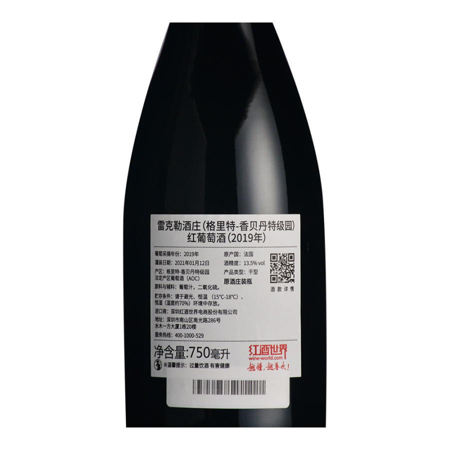 2019年雷克勒酒庄(格里特-香贝丹特级园)红葡萄酒 (法国勃艮第·特级园)
