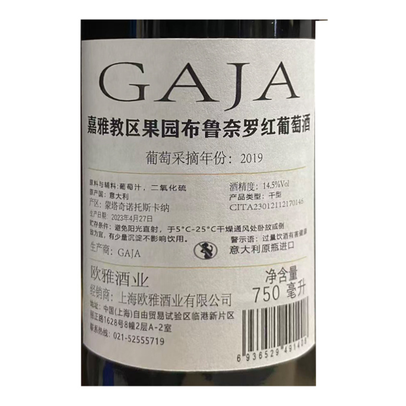 2019年嘉雅教区果园布鲁奈罗红葡萄酒